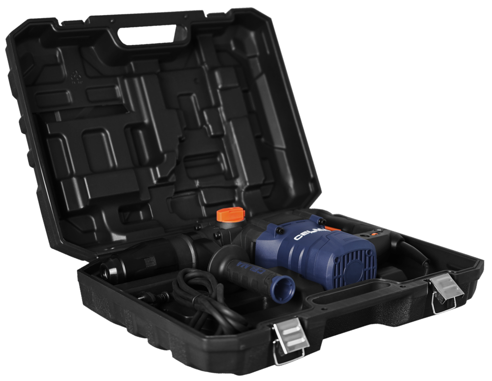 Młot udarowo-obrotowy CELMA Professional PRWg 40GEO jest połączeniem wysokiej mocy, dużej energii udaru oraz funkcjonalności przy zachowaniu wyjątkowo niskiej wagi. Urządzenie jest przeznaczone głównie do kucia, ciężkich prac wyburzeniowych, prac związanych z montażem instalacji WOD-KAN, C.O., GAZ, wykonaniem hydroizolacji iniekcyjnych. Młot został wyposażony w uchwyt SDS-Max, system antywibracyjny, sprzęgło bezpieczeństwa, elektroniczną regulację obrotów oraz duży, wygodny włącznik. Cały zestaw jest spakowany do trwałej walizki, która znacznie ułatwi transport, przechowywanie, a także zmniejszy ryzyko przypadkowego uszkodzenia elektronarzędzia wraz z wyposażeniem.